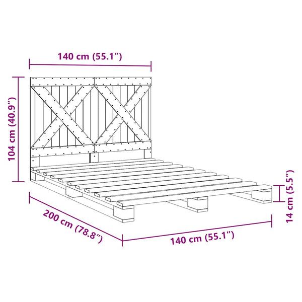 Sängynrunko päätylevyllä 140x200cm mänty