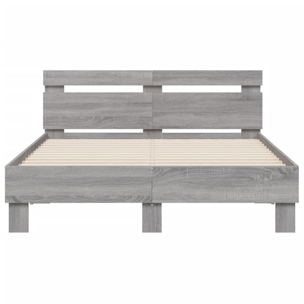 Harmaa sängynrunko päätylevyllä 135x190cm puinen