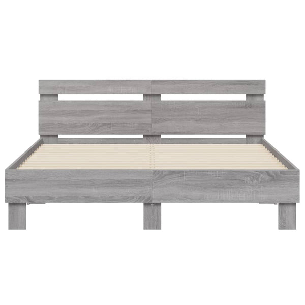 Harmaa sängynrunko päätylevyllä 140x190cm puinen