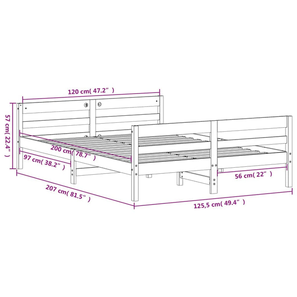Valkoinen sängynrunko päätylevyllä 120x200cm mänty
