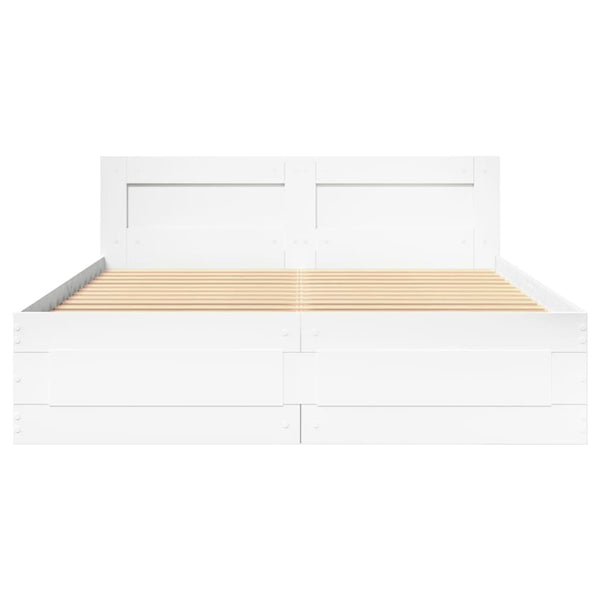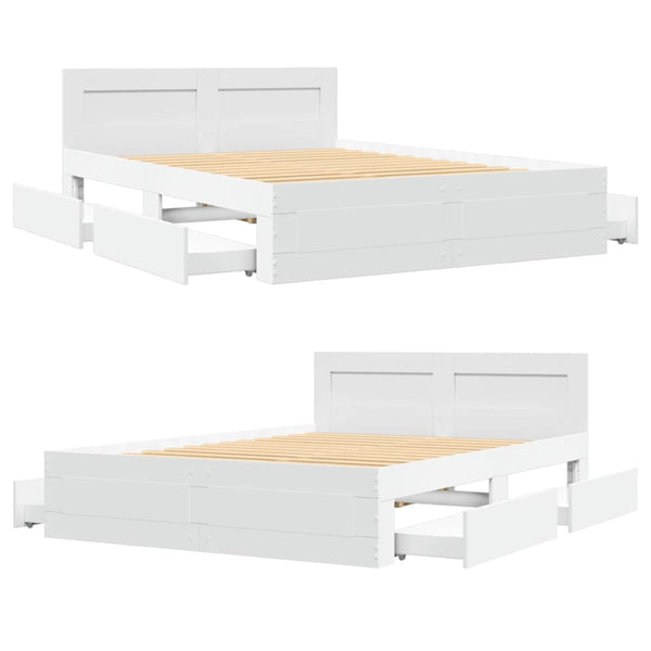 Valkoinen sängynrunko päätylevyllä 140x190cm puinen