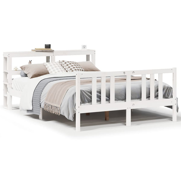 Valkoinen sängynrunko päätylevyllä 140x200cm mänty