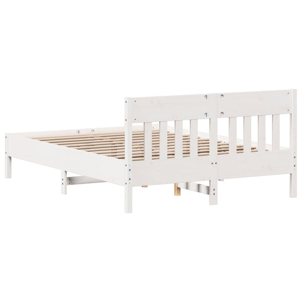 Valkoinen sängynrunko päätylevyllä 140x200cm mänty