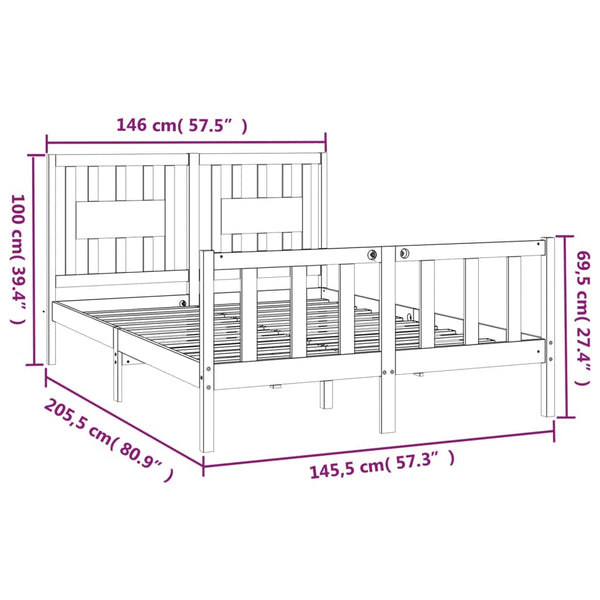 Valkoinen sängynrunko päätylevyllä 140x200cm mänty