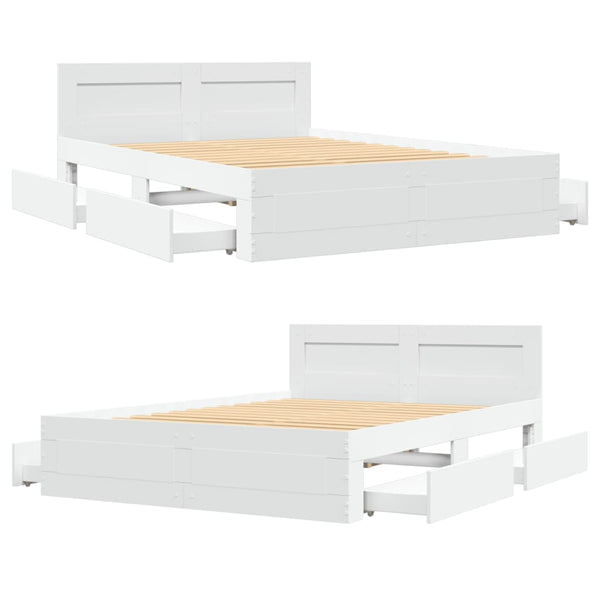 Valkoinen sängynrunko päätylevyllä 140x200cm puinen