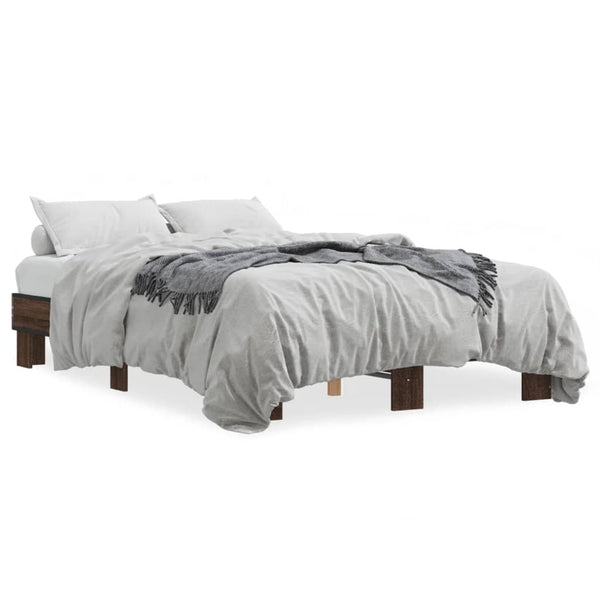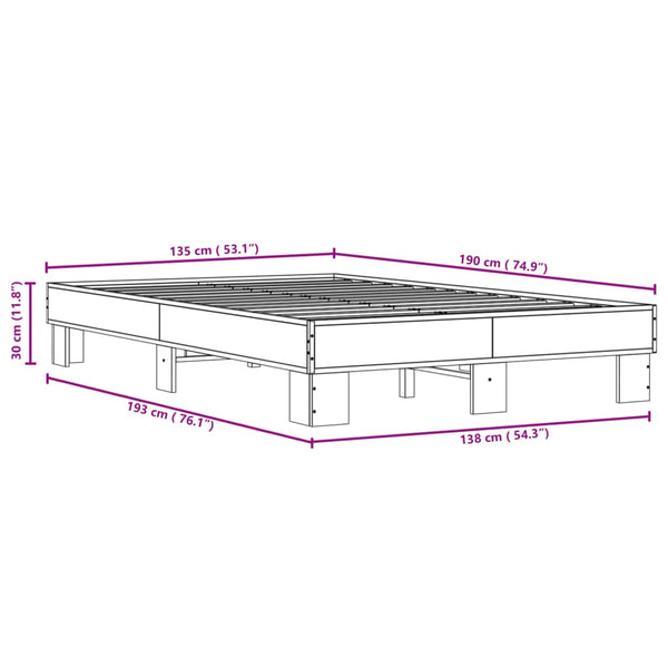 Ruskea sängynrunko 135x190cm puinen ja metalli