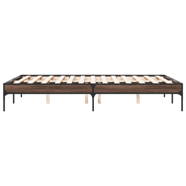 Ruskea sängynrunko 135x190cm puinen ja metalli