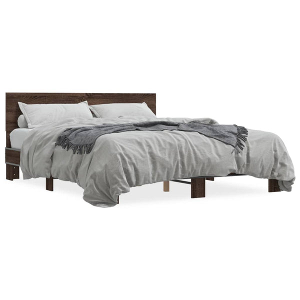 Ruskea sängynrunko 150x200cm puinen ja metalli