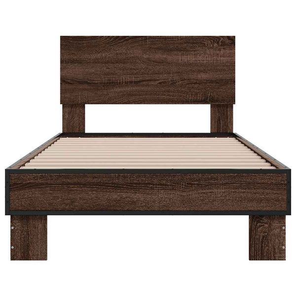 Ruskea sängynrunko 75x190cm puinen ja metalli