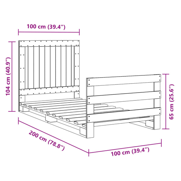 Sängynrunko sängynpäädyllä 100x200cm mänty