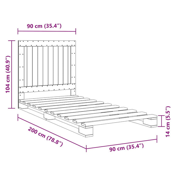 Sängynrunko sängynpäädyllä 90x200cm mänty