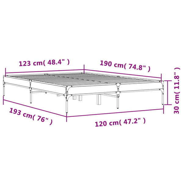 Sonoma-tammi sängynrunko 120x190cm puinen ja metalli