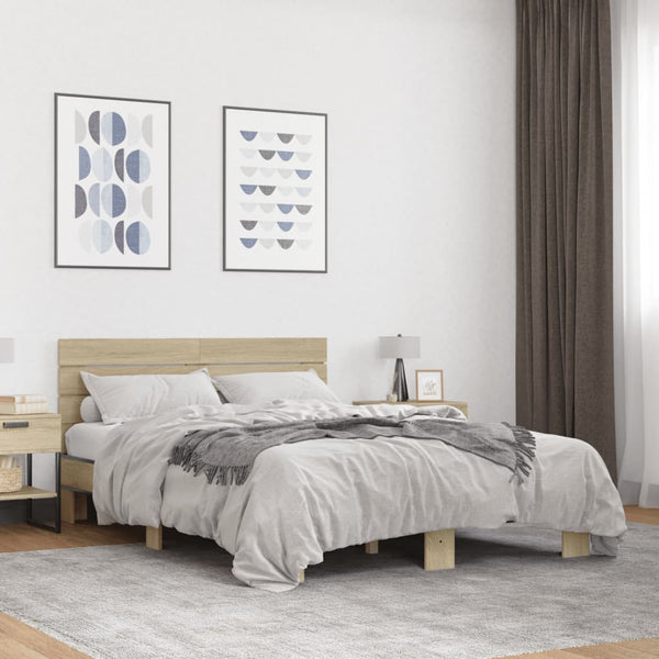Sonoma tammi sängynrunko 140x190cm puinen ja metalli