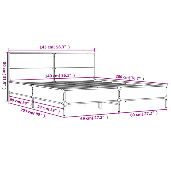 Sonoma tammi sängynrunko 140x200cm puinen ja metalli