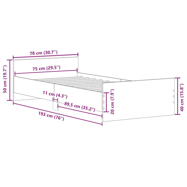 Sonoma tammi sängynrunko 75x190cm small single puinen