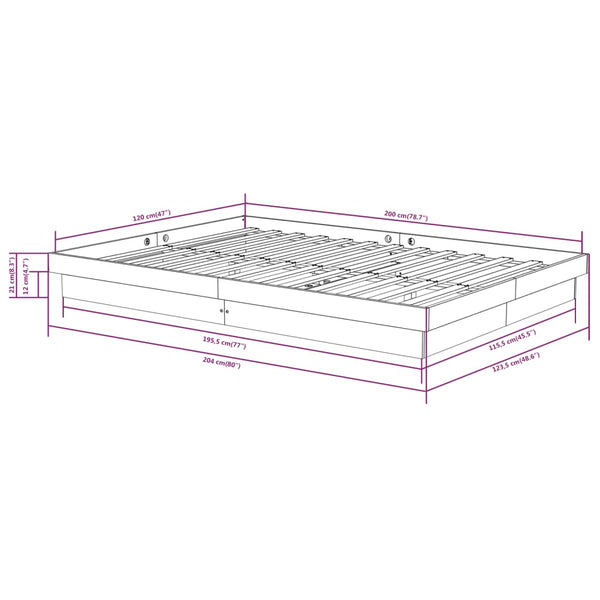 - Tämä sängynrunko sopii patjalle, jonka mitat ovat 120 x 200 cm.