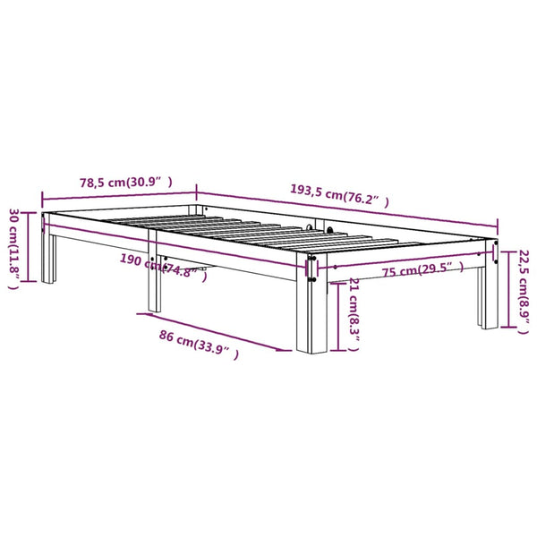- Tämä sängynrunko sopii patjalle, jonka mitat ovat 75 x 190 cm (2FT6 Small Single).