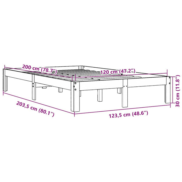 Vahanruskea sängynrunko 120x200cm mänty