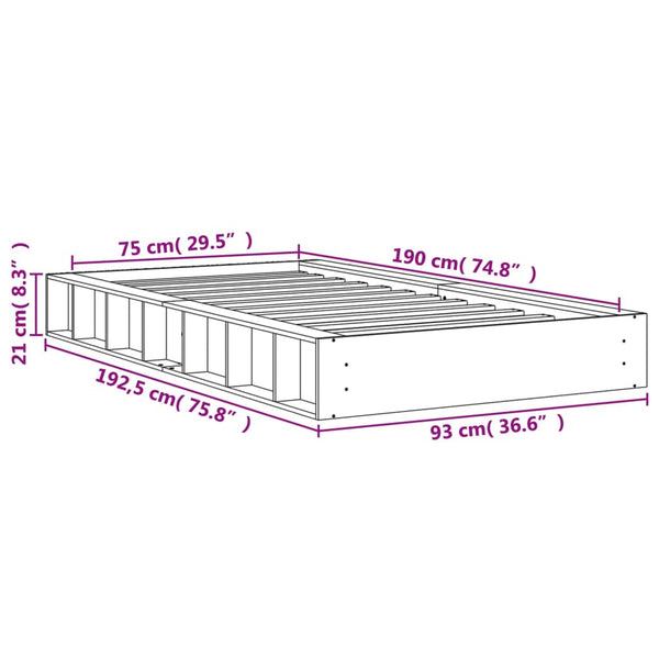 Vahanruskea sängynrunko 75x190cm mänty