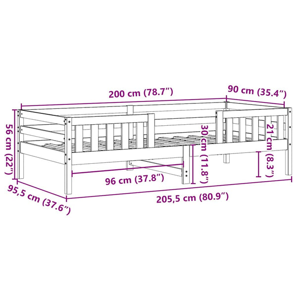 Vahanruskea sängynrunko 90x200cm mänty