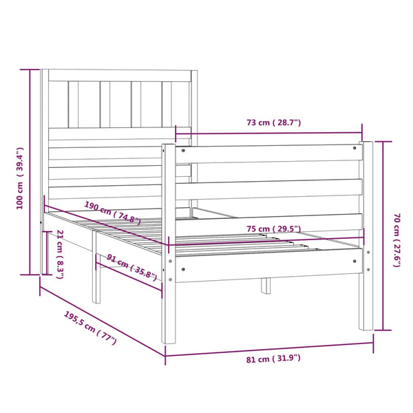 - Tämä sängynrunko sopii patjalle, jonka mitat ovat 75 x 190 cm (2FT6 Small Single).