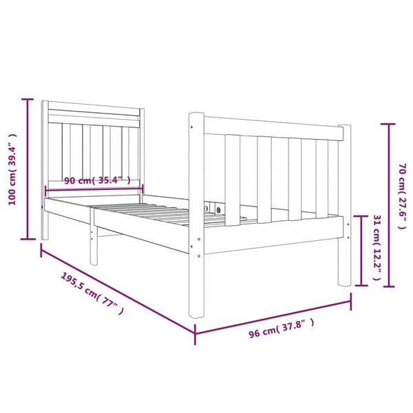 - Tämä sängynrunko sopii patjalle, jonka mitat ovat 90 x 190 cm (3FT6 Single).