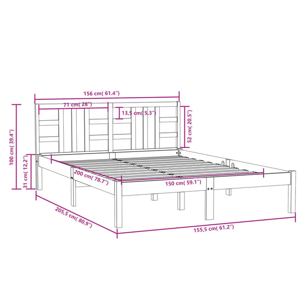 - Tämä sängyn runko sopii patjalle, jonka mitat ovat 150 x 200 cm (5FT King Size).