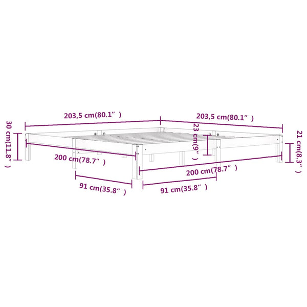 Valkoinen sängynrunko 200x200cm mänty