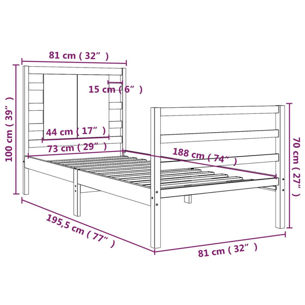 - Tämä sängynrunko sopii patjalle, jonka mitat ovat 75 x 190 cm (2FT6 Small Single).