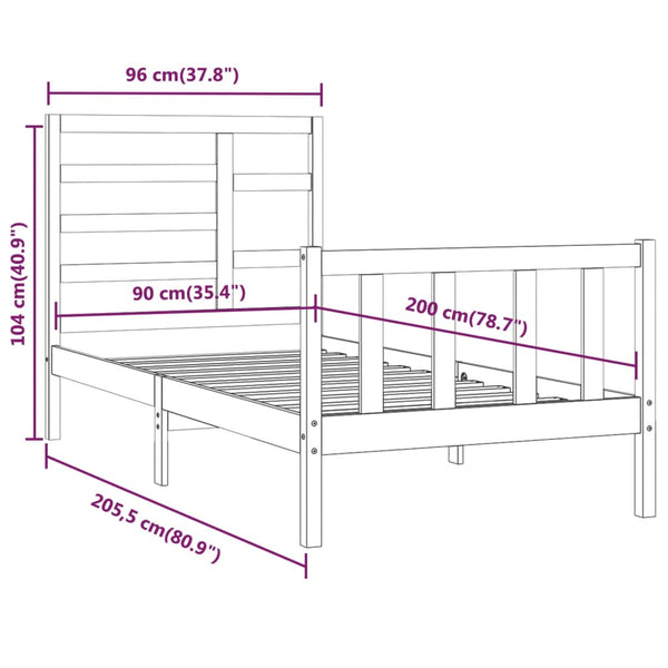 - Tämä sängynrunko sopii patjalle, jonka mitat ovat 90 x 200 cm.