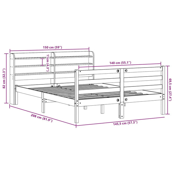 Vahanruskea sänky ilman patjaa 140x190cm mänty