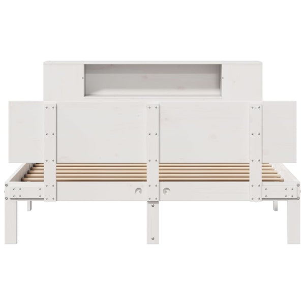 Valkoinen sänky kirjahyllyllä ei patjaa 150x200cm mänty