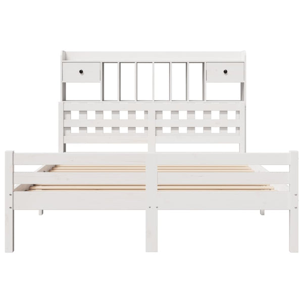 Valkoinen sänky kirjahyllyllä ei patjaa 150x200cm mänty