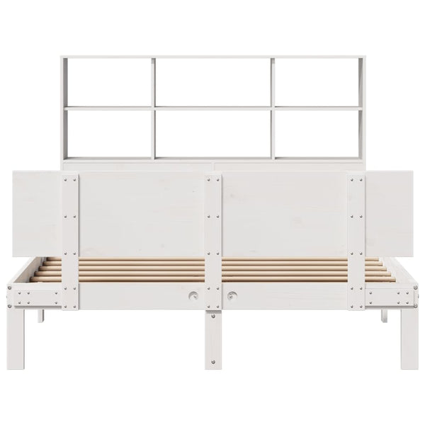 Valkoinen sänky kirjahyllyllä ei patjaa 160x200cm mänty