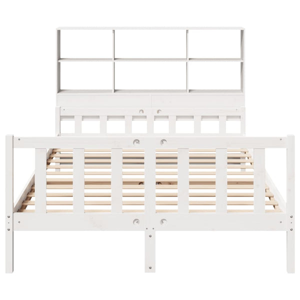 Valkoinen sänky kirjahyllyllä ei patjaa 160x200cm mänty