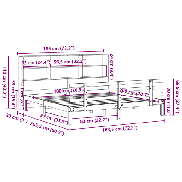 Valkoinen sänky kirjahyllyllä ei patjaa 180x200cm mänty