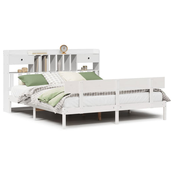 Valkoinen sänky kirjahyllyllä ei patjaa 180x200cm mänty