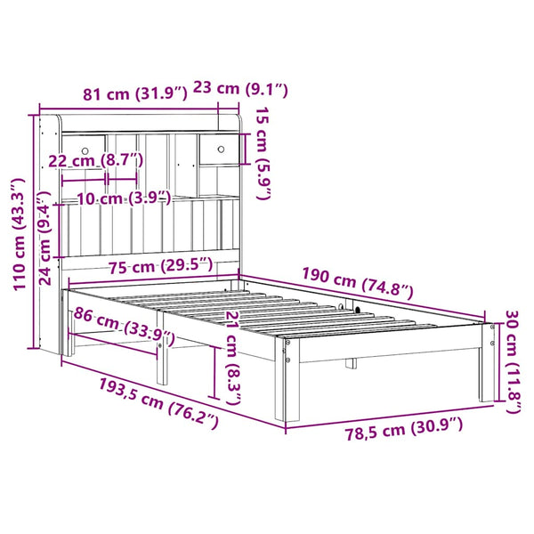 Valkoinen sänky kirjahyllyllä ei patjaa 75x190cm mänty