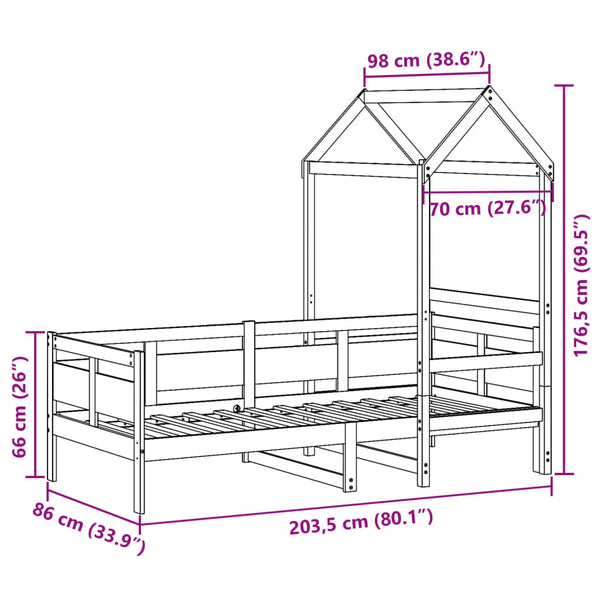 Valkoinen sohvasänky katoksella 80x200cm mänty