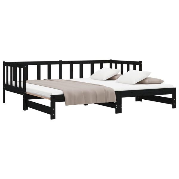 Musta sohvasänky ulosvedettävä 90x190cm 2x, mänty