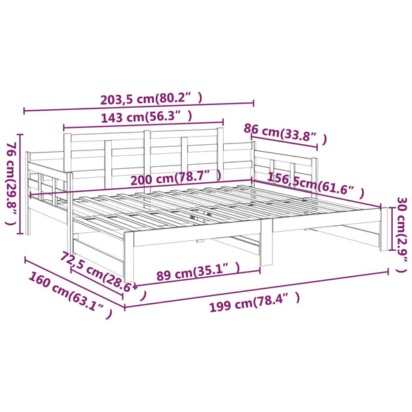 Sohvasänky ulosvedettävä täysi mänty 80x200cm 2x