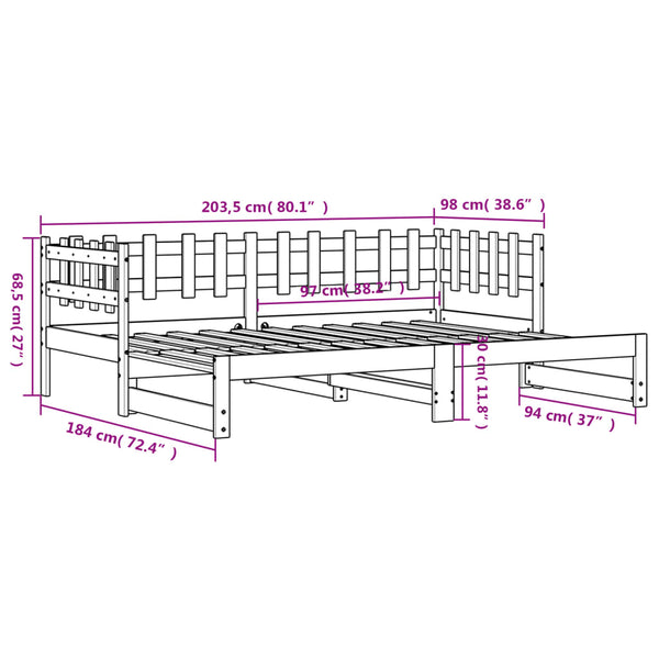 Valkoinen sohvasänky ulosvedettävä 90x200 cm 2x, mänty