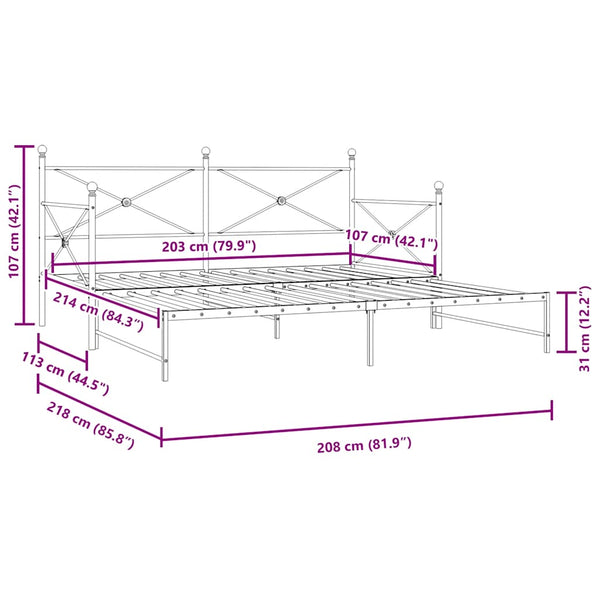 Valkoinen vidaxl-sohvasänky 107x203cm ilman patjaa teräs