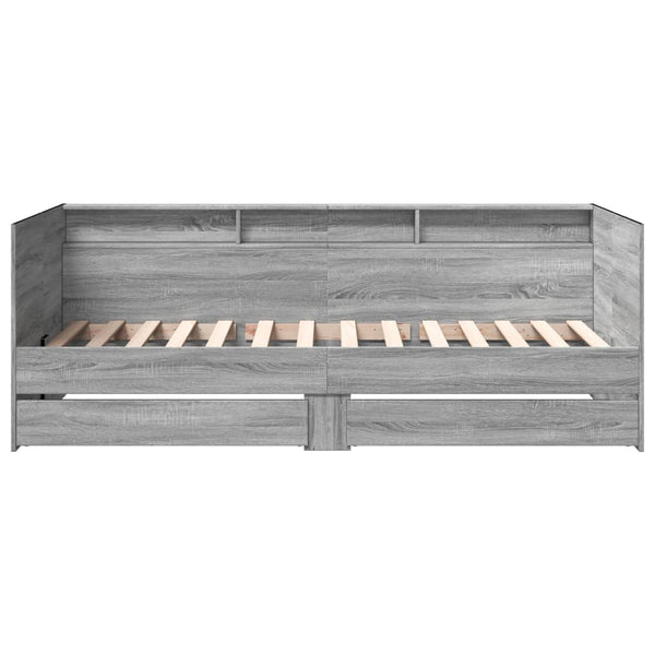 Harmaa vuodesohva laatikoilla ei patjaa 90x190cm sonoma