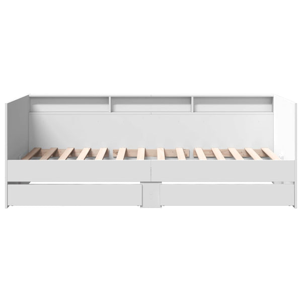 Valkoinen vuodesohva laatikoilla ei patjaa 90x200cm