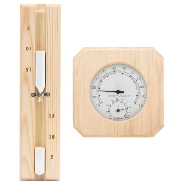 Tämä puinen 2 in 1 lämpö- ja kosteusmittarisarja tiimalasilla on välttämätön saunatarvike löylyhuoneeseen. Se auttaa sinua nauttimaan mukavammasta saunomisesta.