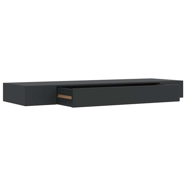 Musta kelluva seinähylly vetolaatikolla 80x25x8cm