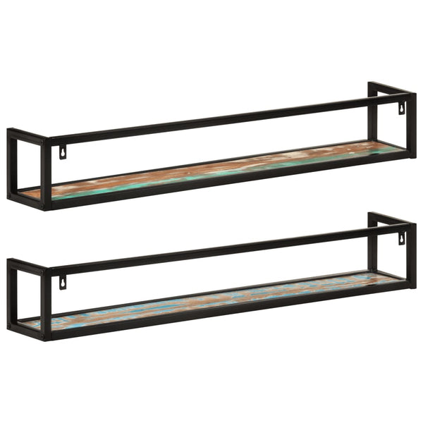 Seinähyllyt 110x17x17cm 2 kpl kierrätetty täyspuu ja rauta