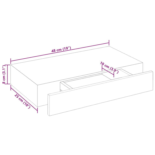 - Hyllyn koko: 48 x 25 x 8 cm (L x S x K)
