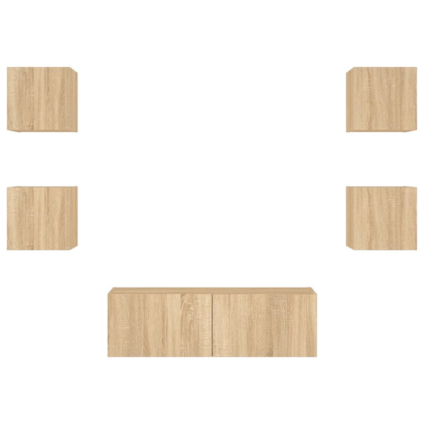 Sonoma-tammi tv-seinäkaappisarja 5-osainen led-valoilla